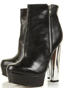 1. Topshop Absinthe Metal High Heel Boots in black for £80. Love the chunky heel – great for toughening up girly outfits for a high fashioned look. Plus super comfortable for round the clock wear.