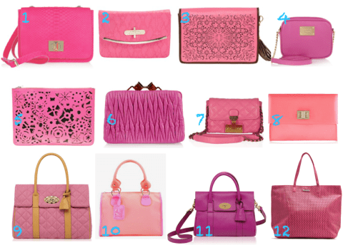 The fashion world this seasons swears by pink handbags: both designer and high street items in the girliest of colours have flooded the market. I could not help but wonder why? (Just had to use Carrie Bradshaw’s favourite quote, excitement for Sex and the City prequel Carrie’s Diaries is in the air.) Maybe they are just giving consumers exactly what they want – a colourful and hopeful break from daily worries that have been brought on us with this long-lasting economic crisis. Maybe it is simply an outcome of different shades of pink proving suitable for two of the biggest seasonal trends: pastel and bright colours. Maybe 2012 is all about love (let’s just assume pink is the colour that represents love) since the rumored apocalypse is looming and we need to find shelter in the most meaningful of feelings. Or maybe we should stop reading into it and enjoy our childhood’s favourite colour making a big comeback to a fashion scene. Below I picked out the most desirable pink handbags to suit any budget for you to enjoy!