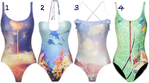 Happy Easter everyone! Have you been enjoying 4 days off? I definitely have been – getting together with friends, lounging around at home with my boyfriend, catching up on unseen films and favourite TV series and of course big Easter Sunday Roast (I was invited to attend, you would never see me making one myself, my kitchen skills are below average). And while I am in London for my 4 days off, some others managed to escape the city and head for far away beach destinations. Hence I was inspired to check out the hottest swimwear of the season and straight away went for my old favourite We Are Handsome, a brand famous for their photo-printed swimwear which appeared on my blog numerous times. And they did not disappoint – see my picks of one pieces below!