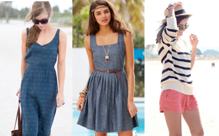 The skeleton of a nautical wardrobe is basic, working for both casual and dressy. Whether an outfit needs to be dressed up for a business meeting or for evening, small changes are all that are needed. Sandals, jeans, a striped tee and a blazer are perfect for running errands. To dress it up for dinner out with friends, change into pumps and white trousers and switch earrings. A morning at the beach can be spent in a long sundress and just slip on a pair of heels, nice jewelry and a fancy up-do for the evening. Hamptons inspired fashion is relaxed and eternally classy on every occasion.