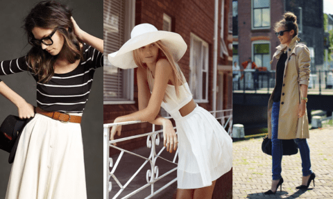 Making the change from spring to summer is easy. Wear blazers and cardigans with tee shirts, blouses and dresses until the heat arrives, and then leave them behind. Change up the accessories, and the transition is complete. A good trench coat is a must when vacationing by the water or simply traveling through spring. It provides warmth when cold wind hits and can be left behind when the sun comes out.