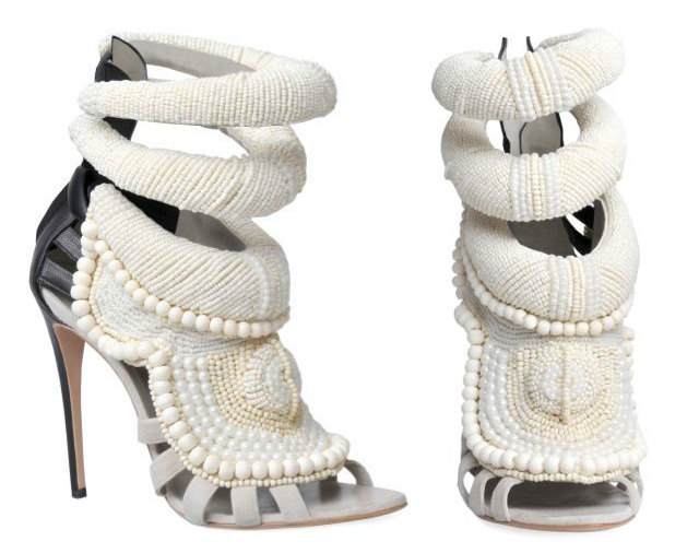 Statement heels inspired by tribal jewellery and covered in pearly beads make your legs look significantly thinner thanks to thick ankle rings, and who would not want that visual effect? But Kanye is not the only one to thank for these beauties as they were created in collaboration with Giuseppe Zanotti, a brand known for their beautiful heels of highest quality – yet another reason to love them! And as much as I love them, I am by far not the only fan! Anna Della Russo wore these heels to Alexander McQueen show straight after they appeared on the runway, Chanel Iman sported them while attending Givenchy show accompanying their creator the day after and recently Kim Kardashian was seen in them, of course who would not wear your boyfriend’s designs!