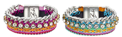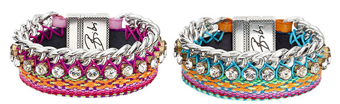 When I was a little girl, friendship bracelets were the coolest thing and I learned how to weave them myself and hence ended up making tens of them for all my friends to wear. Now that the friendship bracelets are back it would have been interesting to try to make one again but due to lack of spare time actually finishing one seems unlikely. The good thing is that in our capitalist society we are no longer required to produce things we want and there is always something similar available to purchase. What is even better in this particular case, is that what is available to purchase is a much better version of what I could have made myself! Say hello to Joyful friendship bracelets by a Dutch brand Bibi Bijoux. Colourful and eye-catching those bracelets combine original friendship style weaving with crystals and metal chain to create statement piece that unlike originals comes with useful clasp. Each one is hand made and may have slight variations of design, so you are likely to get a completely unique piece!