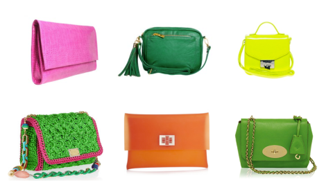 Colour is good. Repeat it to yourself in preparation to new season where splashes of colour in the outfit is a must. If you are not courageous enough to try head-to-toe colour blocking, there is no better way then to add it with accessories. And while colourful jewellery is great, this season try to use colourful bags instead – there are so many to choose from! Shape-wise it is all about clutches and small cross-body bags, so leave everything but essentials at home (it is surprising how much of unnecessary things I carry around in my handbag thinking it might one day prove useful – it doesn’t, and I am sure I am not the only one). Here is the selection of my top picks to suit different budgets – have a look around yourself and I am sure you will be spoiled for choice.