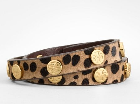 i just recently discovered that apart from the most amazing flat shoes called Reva and a range of very cool bags Tory Burch also has a jewellery line. I am impressed, especially with this cute leather animal print cuff. It would look great as a part of a bracelet stack that graces the arms of many celebrities and jewellery lovers because its so different(both the shape and texture).