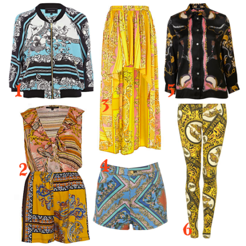 Yet scarf print is not new, Versace and Etro are two brands that most closely have been associated with it for years, but thanks to D&G the print is back and it’s big, migrating it out of my grandma’s closet and to the wish lists of all fashionistas. Below are the classics-gone-youthful from Versace and Etro, the pricey way to go about this hot trend.